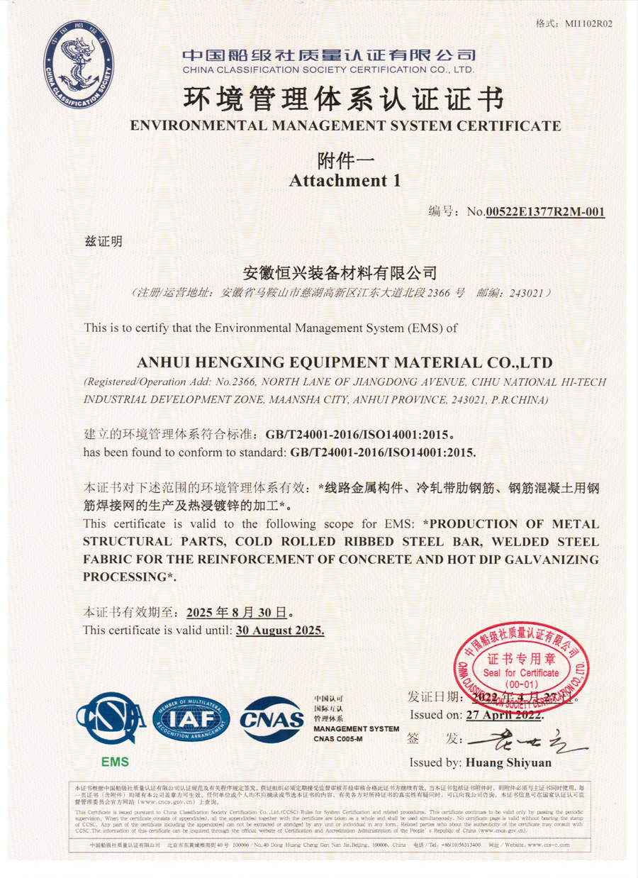 • 恒興環(huán)境認(rèn)證